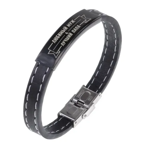 Кожаный браслет с гравировкой «Любимый муж и лучший папа».
