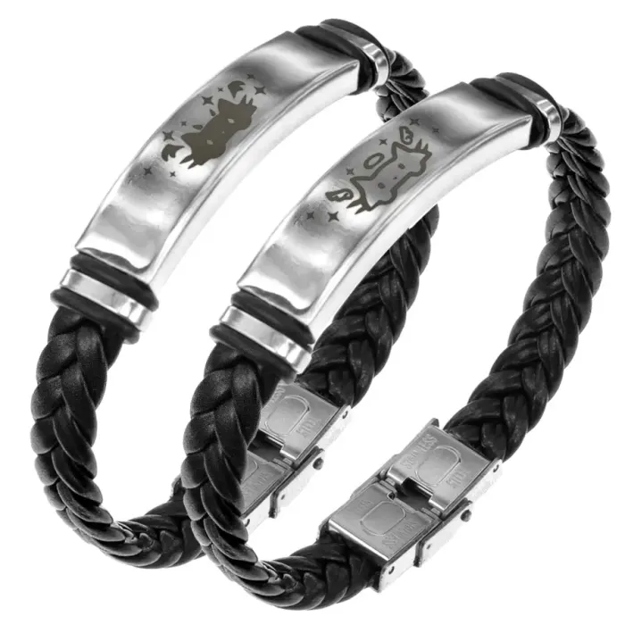 Парный кожаный браслет Коты черт и ангел BSKRP1-006