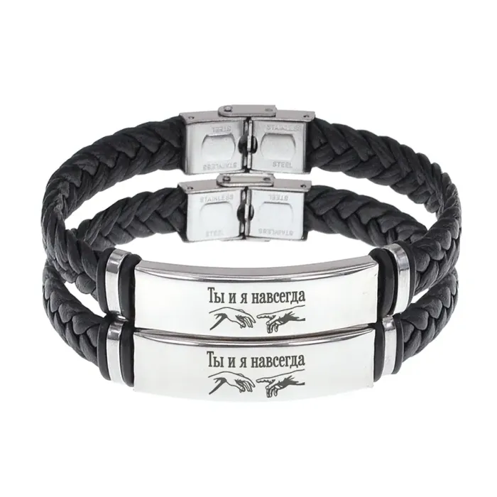 Парные плетёные кожаные браслеты с гравировкой «Ты и я навсегда».