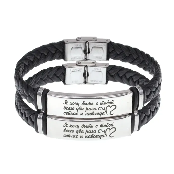 Парные кожаные браслеты с гравировкой «Я хочу быть с тобой».