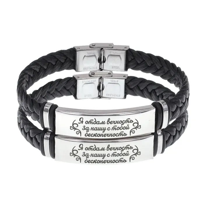 Парные кожаные браслеты с гравировкой «Я отдам вечность».