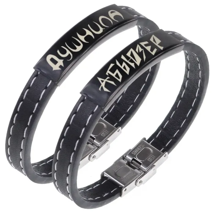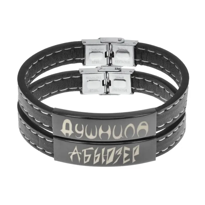 Парные браслеты из экокожи с гравировкой «Душнила» и «Абьюзер».