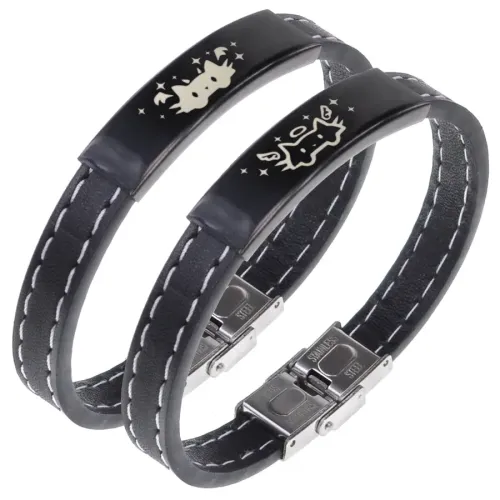 Парные браслеты из экокожи с гравировкой «Кот - черт» и «Кот - ангел».