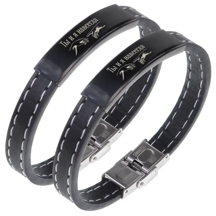 Парные браслеты из экокожи с гравировкой 'Ты и я навсегда'.