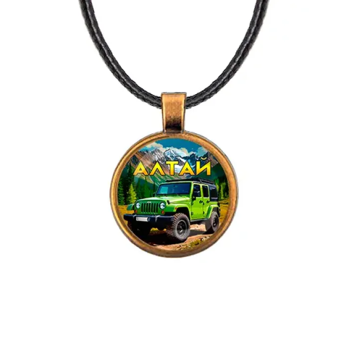 Кулон из бижутерного сплава в цвете бронза со шнурком. Изображение защищено выпуклой стеклянной линзой.