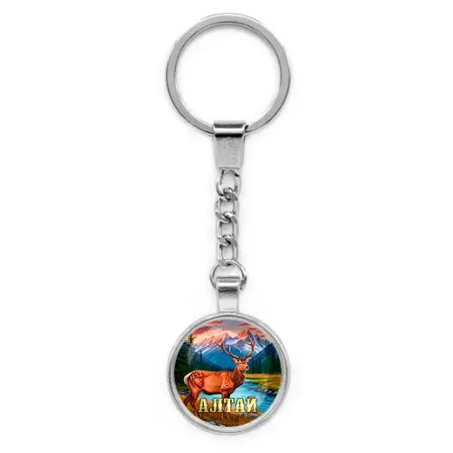 Круглый брелок, цвет серебро, с цепочкой, Алтай C0402022