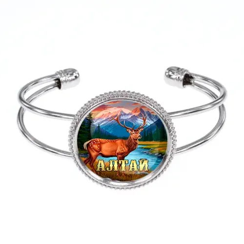 Браслет из бижутерного сплава с покрытием под серебро, с декоративным элементом под стеклянной линзой.