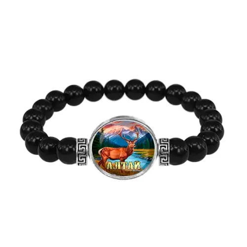 Сувенирный браслет из натурального черного агата со вставкой под стеклянной линзой.