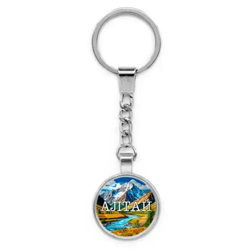 Круглый брелок, цвет серебро, с цепочкой, Алтай C0403022