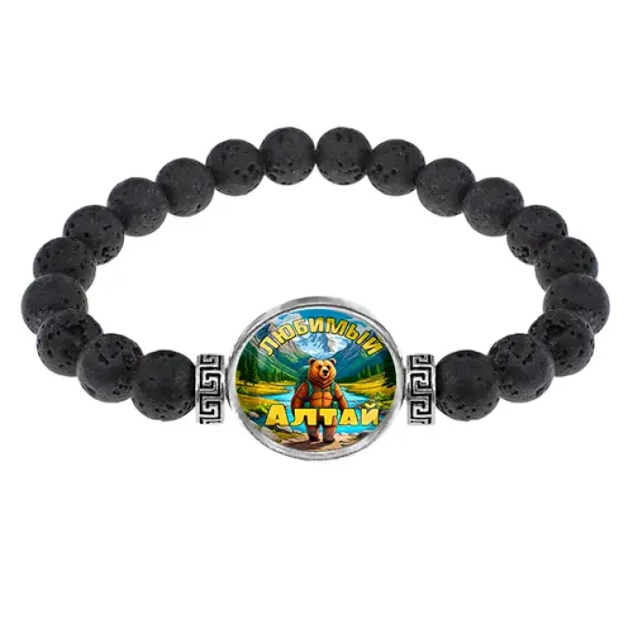 Стрейч-браслет из натуральной лавы с изображением под выпуклой стеклянной линзой.