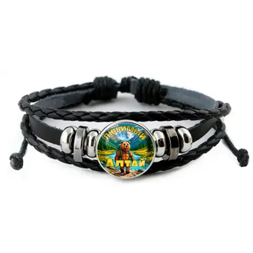 Браслет из искусственной кожи с декоративным элементом под стеклянной линзой.