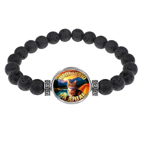 Стрейч-браслет из натуральной лавы с изображением под выпуклой стеклянной линзой.