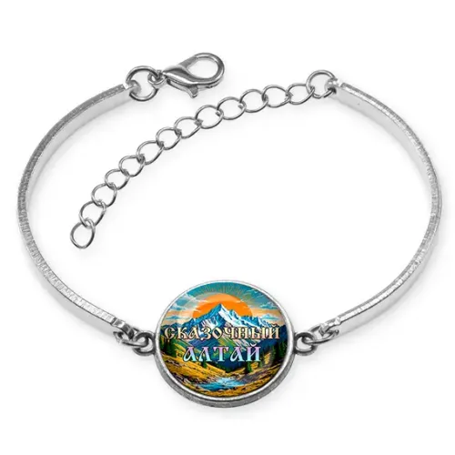 Браслет из бижутерного сплава с изображением под выпуклой стеклянной линзой.