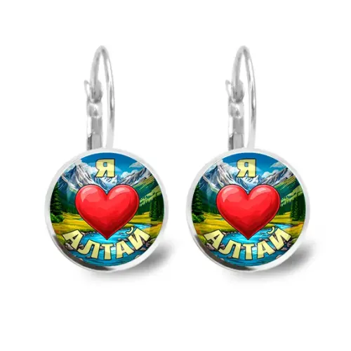 Серьги сувенирные из бижутерного сплава с изображением под выпуклым стеклом.
