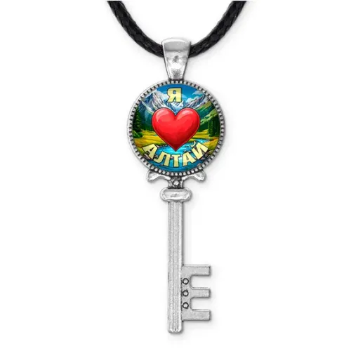 Кулон ключ, цвет серебро, со шнурком, Я люблю Алтай C0408043