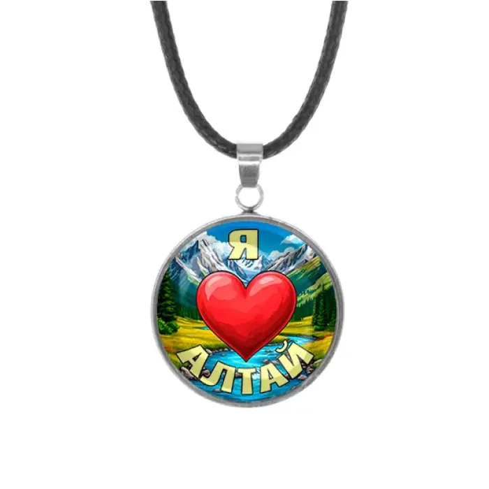 Кулон, нержавеющая сталь, со шнурком, Я люблю Алтай C0408062