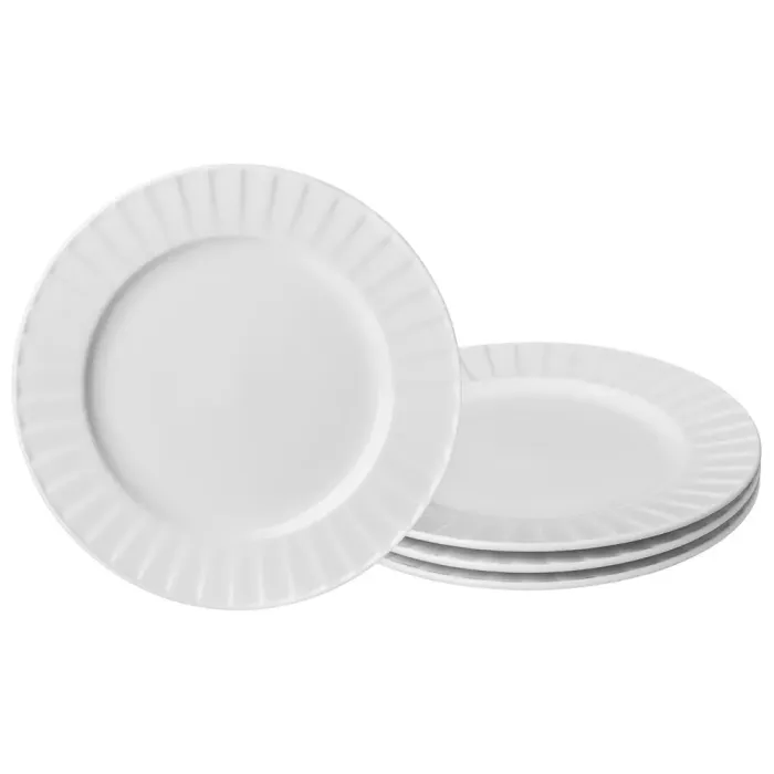 - Материал: фарфор Fine China- Диаметр: 20 см- Высота: 1,5 см- Количество в наборе: 4 штуки- Совместимость: подходит для использования в микроволновой печи и мытья в посудомоечной машине- Особенности ухода: мытьё в посудомоечной машине