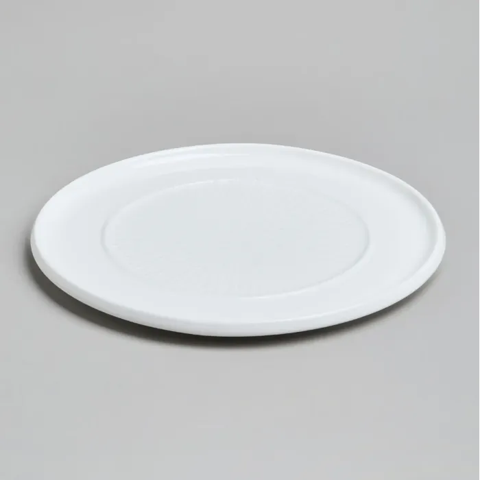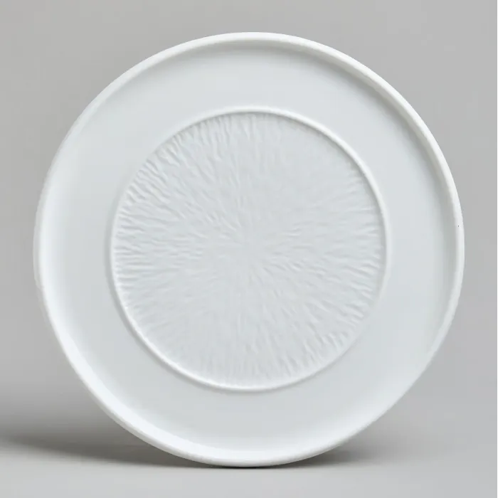Тарелка выполнена из фарфора, что обеспечивает её прочность и гигиеничность. Поверхность изделия имеет рельефный декор. Форма тарелки рассчитана на удобную подачу порционных блюд.