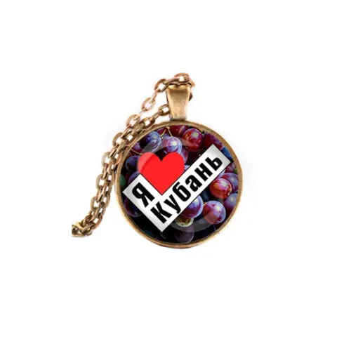 Кулон с цепочкой из бижутерного сплава в бронзовом цвете с изображением «Я люблю Кубань».