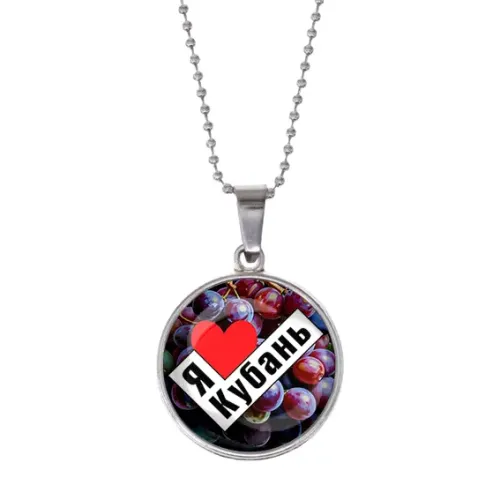 Кулон с цепочкой, сувенирный аксессуар с символикой Кубани. Материал — бижутерный сплав с серебряным покрытием и стеклом.