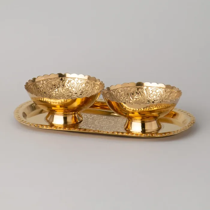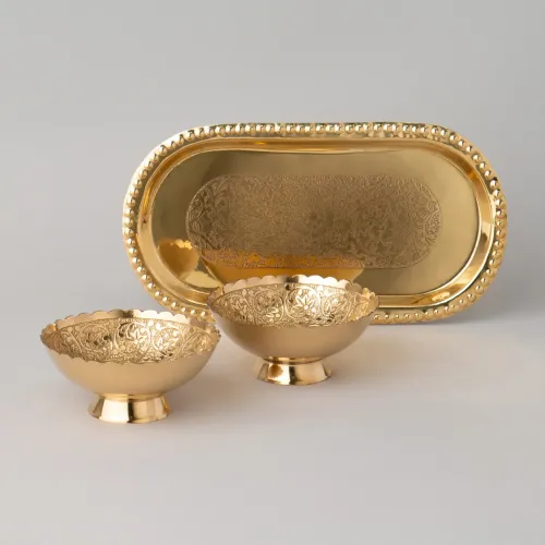 Набор для сервировки на подносе от Lefard предназначен для подачи закусок или декоративных целей. Изделие выполнено из латуни и относится к серии Palazzo.