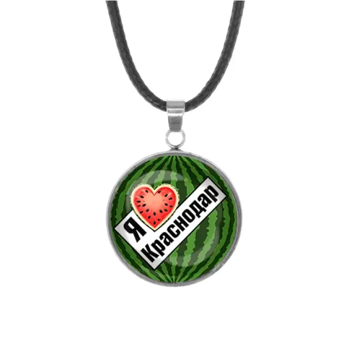 Кулон из нержавеющей стали с изображением «Я люблю Краснодар» под стеклянной линзой.