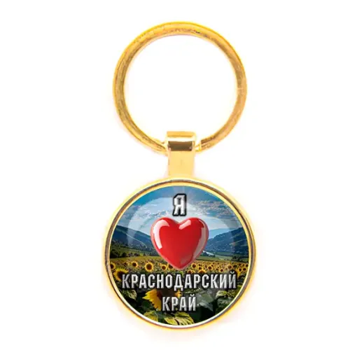 Круглый брелок, цвет золото, Я люблю Краснодарский край C0503019