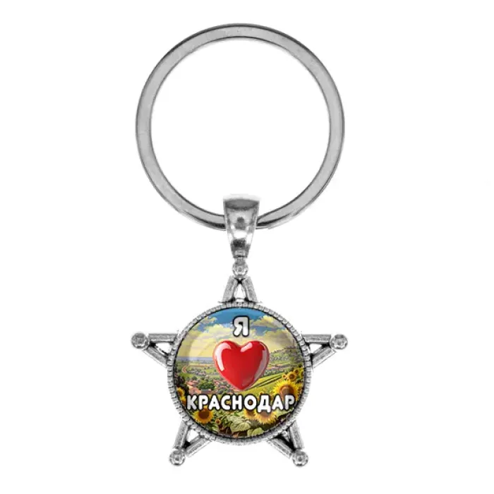Брелок в форме звезды из металла с надписью «Я люблю Краснодар».