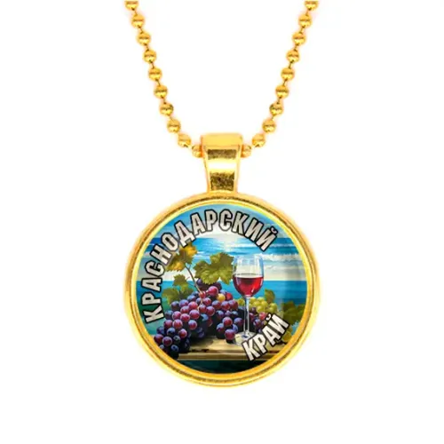 Сувенирный кулон с цепочкой. Материал: бижутерный сплав со стеклянной линзой, покрытие под золото.