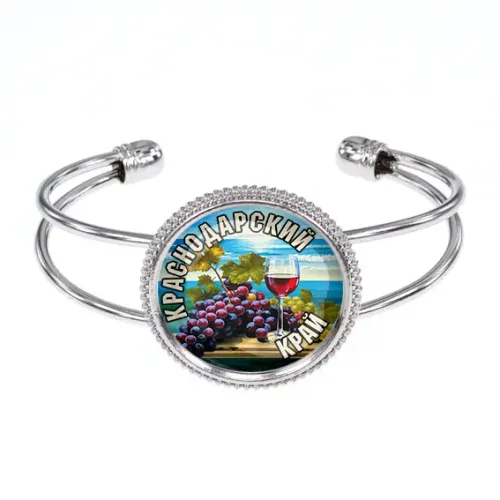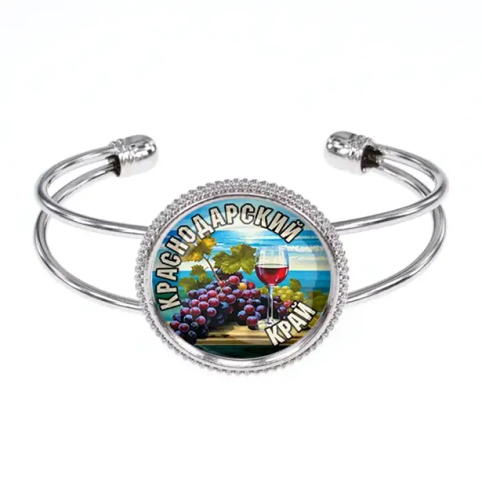 Металлический браслет-сувенир с изображением под выпуклой стеклянной линзой.