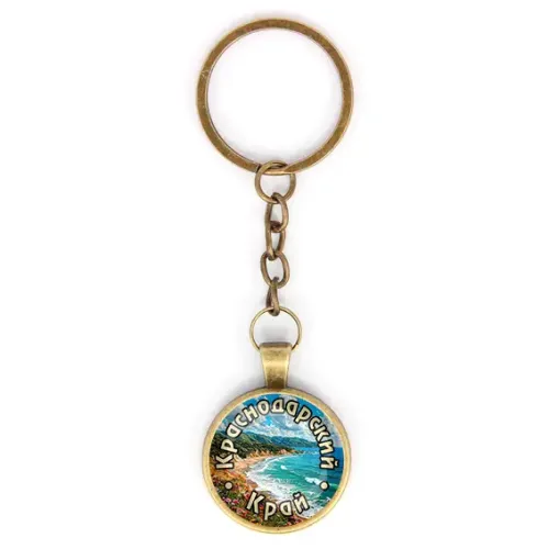 Круглый брелок с изображением Краснодарского края — это стильный и практичный аксессуар, который станет отличным подарком или сувениром. Изготовленный из бижутерного сплава с покрытием под бронзу и стекла, он сочетает в себе прочность и элегантность.