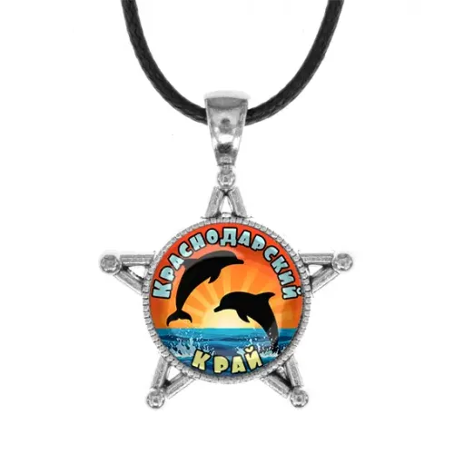 Металлический сувенирный кулон в форме звезды с изображением Краснодарского края.
