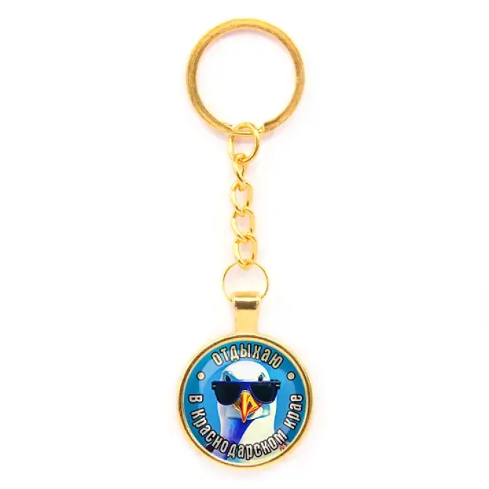 Круглый брелок, цвет золото, с цепочкой, Отдыхаю в Краснодарском крае C0510020