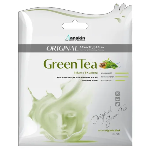 Альгинатная маска с экстрактом зелёного чая от Anskin — это высокоэффективное средство для ухода за кожей лица, представленное в удобной упаковке саше весом 25 грамм. Маска содержит натуральные компоненты, включая экстракт зелёного чая, известный своими антиоксидантными свойствами и способностью успокаивать кожу. В состав также входят диатомовая земля, глюкоза, альгин и сульфат кальция. Эти ингредиенты обеспечивают увлажнение и питание кожи, улучшая её общее состояние.