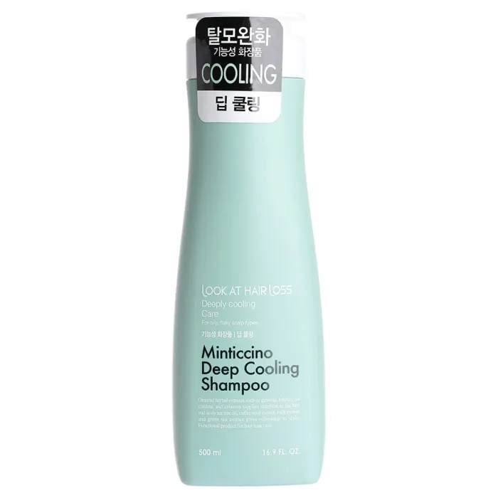 Шампунь Look at Hair Loss Minticcino Deep Cooling от Daeng Gi Meo Ri предназначен для ухода за волосами при жирной коже головы. Формула шампуня обогащена экстрактами кофе и зелёного чая, а также маслом чайного дерева, которые способствуют оптимизации выработки кожного себума, делая волосы более эластичными и мягкими. Экстракты ментола и эвкалипта обеспечивают ощущение свежести и чистоты, а бодрящий аромат мяты превращает процесс мытья головы в приятное занятие.