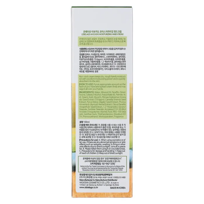 Крем для рук с экстрактом авокадо LEBELAGE AVOCADO MOISTURIZING HAND CREAM 100 мл