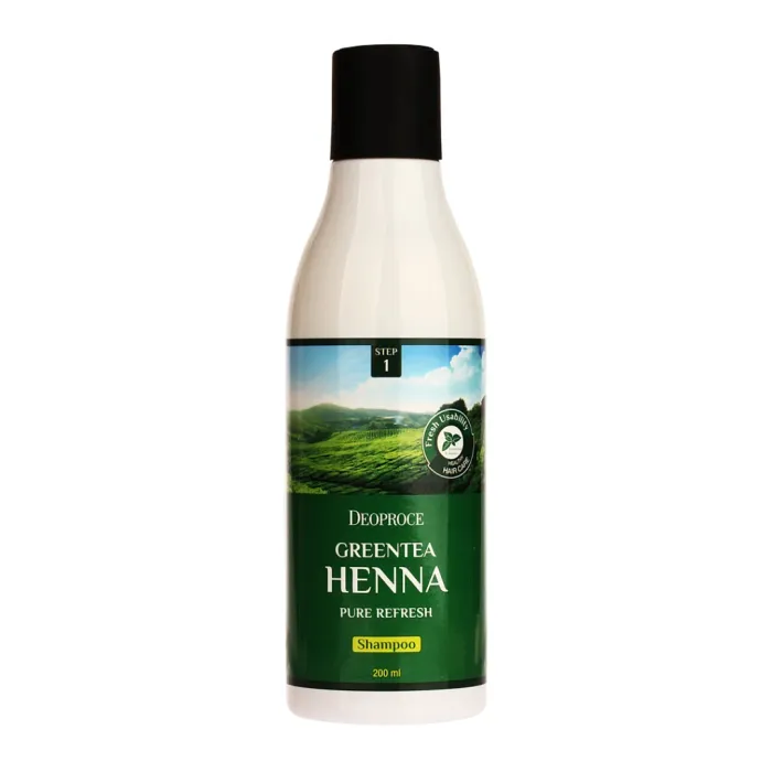 Шампунь для волос с зеленым чаем и хной DEOPROCE GREENTEA HENNA PURE REFRESH SHAMPOO объемом 200 мл от корейского бренда Deoproce обеспечивает мягкий и эффективный уход за волосами. Формула шампуня, обогащенная экстрактами зелёного чая и хны, витаминизирует волосяные луковицы и волосы по всей длине, придавая им здоровый блеск и энергию.