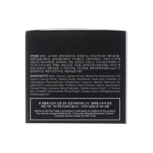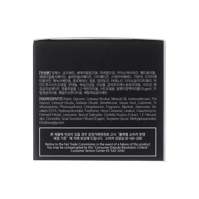 Состав: water, mineral oil, glycerin, butylene glycol, cetyl alcohol, stearic acid, beeswax, PEG-100 stearate, glyceryl stearate, polysorbate 60, dimethicone, phenoxyethanol, galactomyces ferment filtrate, centella asiatica extract, triethanolamine, carbomer, snail secretion filtrate (муцин черной улитки), allantoin.