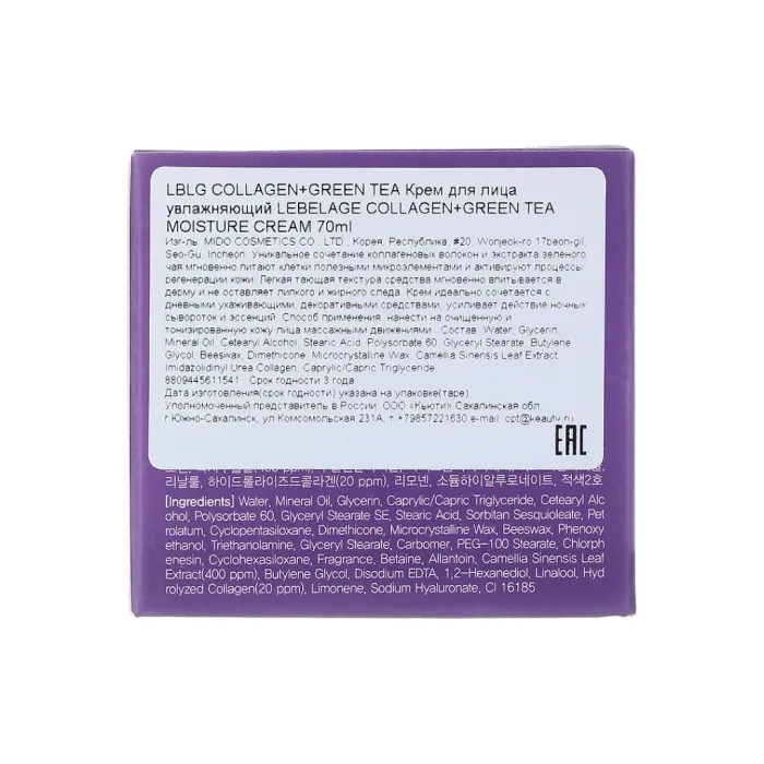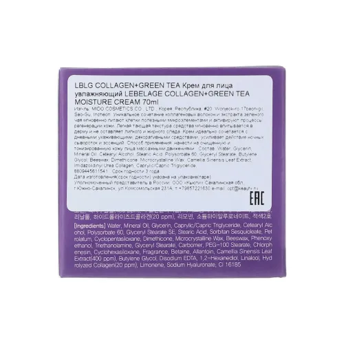 Крем для лица увлажняющий LEBELAGE COLLAGEN + GREEN TEA MOISTURE CREAM 70 мл