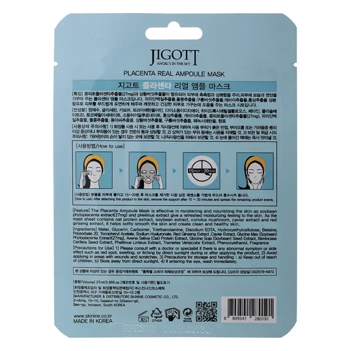 Маска на тканевой основе JIGOTT PLACENTA REAL AMPOULE MASK 27 мл