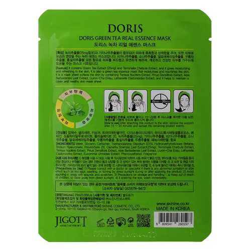 Маска на тканевой основе DORIS GREEN TEA REAL ESSENCE MASK, 25 мл