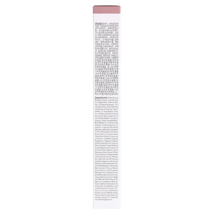 Состав: вода, бутиленгликоль, каприловый/каприновый триглицерид, цетеариловый спирт, циклопентасилоксан, циклогексасилоксан, ПЭГ-100 стеарат, глицерилстеарат, ниацинамид, 1,2-гександиол, глицерин, масло ши, ацетил гексапептид-8 и другие компоненты.