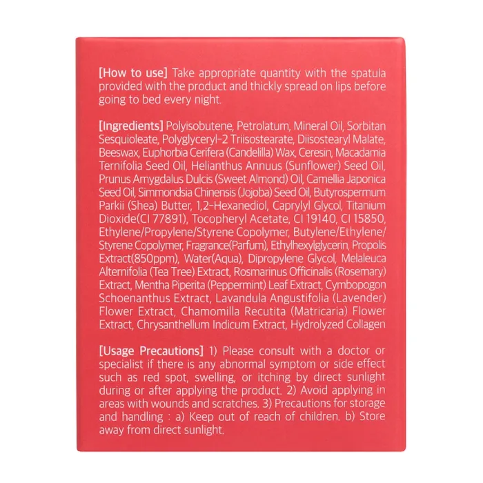 Ночная маска для губ Jigott Lip Sleeping Mask [PROPOLIS] обеспечивает интенсивное увлажнение и питание нежной кожи губ. Это средство помогает предотвратить шелушение и растрескивание, а также способствует восстановлению синтеза коллагеновых и эластиновых волокон. Маска обладает регенерирующими, смягчающими и заживляющими свойствами благодаря богатому составу из натуральных масел и экстрактов.
