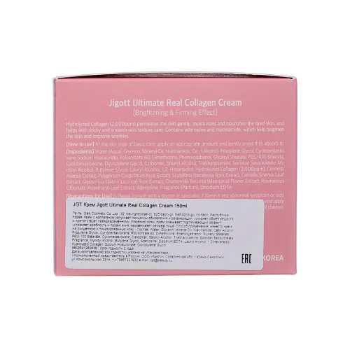 Крем Jigott Ultimate Real Collagen Cream — это эффективное средство для ухода за кожей, которое помогает бороться с признаками старения. Благодаря содержанию коллагена, крем запускает процессы обновления и регенерации кожи, ускоряет обмен веществ и препятствует её преждевременному старению. Он оказывает подтягивающий эффект, устраняет дряблость и провисание кожи, выравнивает её рельеф. Крем подходит для всех типов кожи и легко впитывается, не оставляя жирного блеска.
