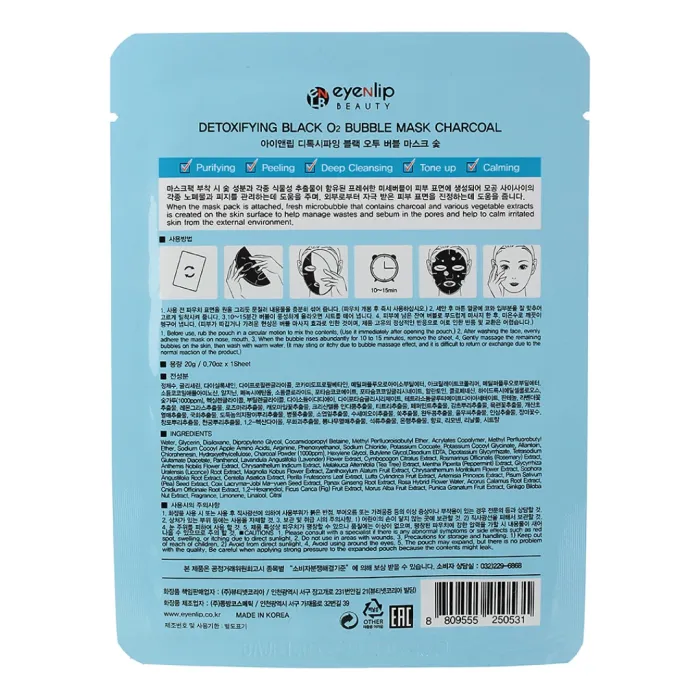 Маска тканевая кислородная DETOXIFYING BLACK O2 BUBBLE MASK CHARCOAL от Eyenlip разработана для глубокого насыщения кожи кислородом и стимуляции кровообращения. Благодаря древесному углю, маска эффективно выводит токсины, отшелушивает и смягчает кожу, придавая ей естественное сияние чистоты и свежести. Средство способствует обновлению клеток, выравниванию микротекстуры кожи и улучшению трофики тканей, что помогает добиться здорового тона лица.