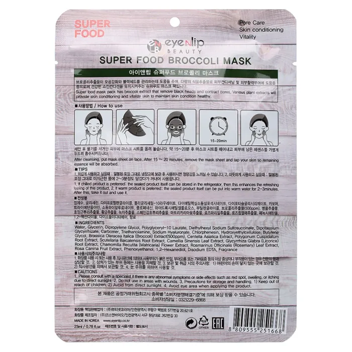 Маска на тканевой основе EYENLIP SUPER FOOD BROCCOLI MASK 23 мл