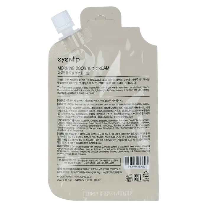 Крем Morning Boosting Cream от бренда Eyenlip — это средство для глубокого увлажнения кожи лица. Благодаря высокому содержанию трегалозы, крем обеспечивает длительное увлажнение и поддерживает оптимальный уровень влаги в коже. Лёгкая текстура крема делает его идеальным для использования перед нанесением декоративной косметики, создавая основу для безупречного макияжа.