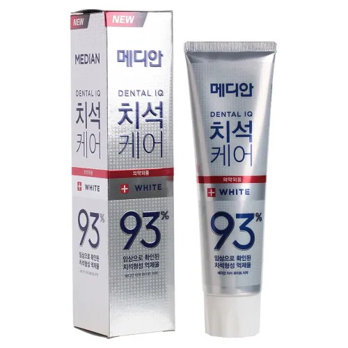 Зубная паста Median Dental IQ 93% White, произведённая в Республике Корея компанией AMORE PACIFIC CO., LTD., предназначена для эффективной борьбы с зубным налётом и бактериальными отложениями. Она помогает предотвратить образование зубного камня и поддерживает здоровье полости рта. Паста активно разрушает зубной налёт благодаря антимикробному компоненту и деликатно воздействует на дёсны, укрепляя при этом зубную эмаль.