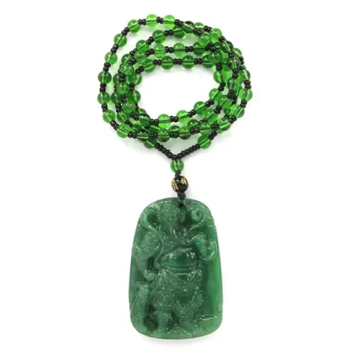 Амулет с чётками Бог войны Гуань Гун — это не просто украшение, а мощный символ удачи и процветания. В китайской культуре Гуань Гун почитается как защитник угнетённых и покровитель бизнесменов. Изготовленный из качественного стекла в зелёном цвете, амулет привносит гармонию и защищает от злых духов.