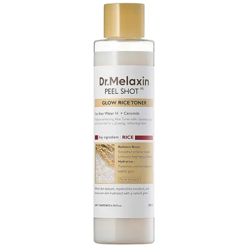 Тонер для лица Dr.MELAXIN PEEL SHOT GLOW WHITE RICE TONER — это средство для ухода за кожей на основе рисовой воды, которое помогает добиться ровного и сияющего тона лица. Продукт обладает лёгкой молочной текстурой, которая быстро впитывается и не оставляет ощущения липкости. Формула тонера гипоаллергенна, что делает его подходящим для всех типов кожи.